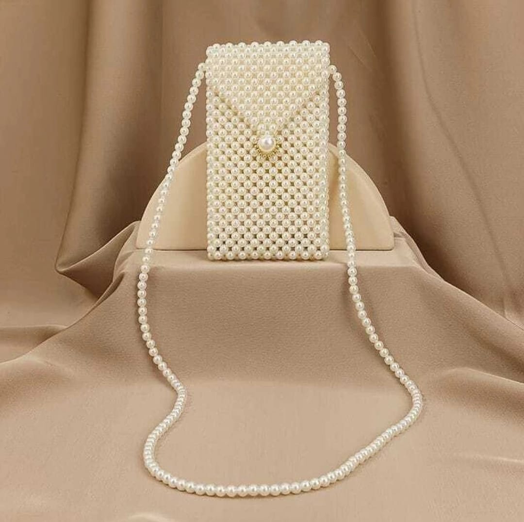 This sling/crossbody mobile bag is a perfect design for daily use or occasional travel. Beautiful pearl bag is made of artificial pearl which makes it simple and elegant. Small but Elegant!