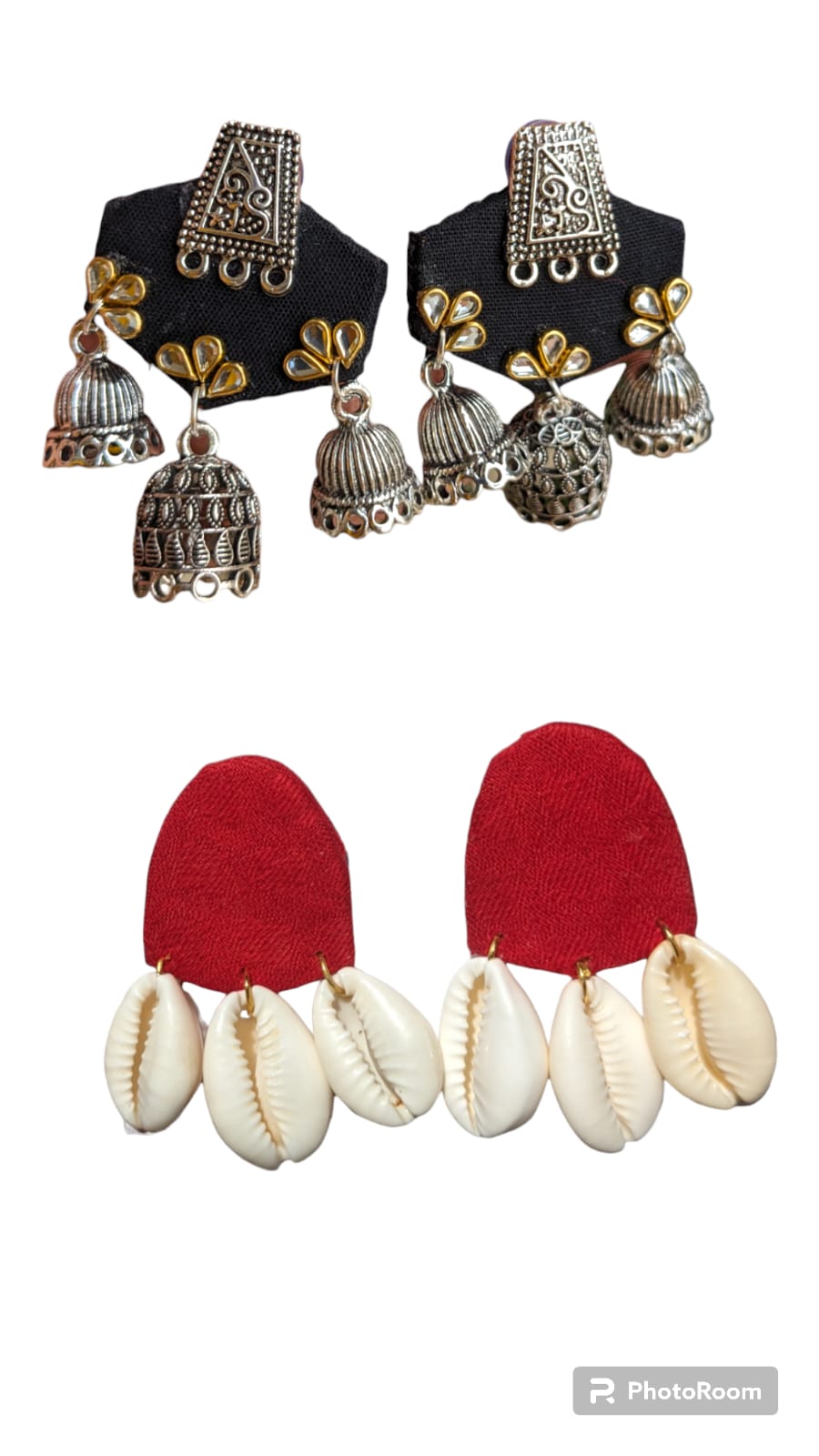 jhumka earrings, handmade earrings, cowrie earrings,oxidised jhumka earrings, combo jewelry