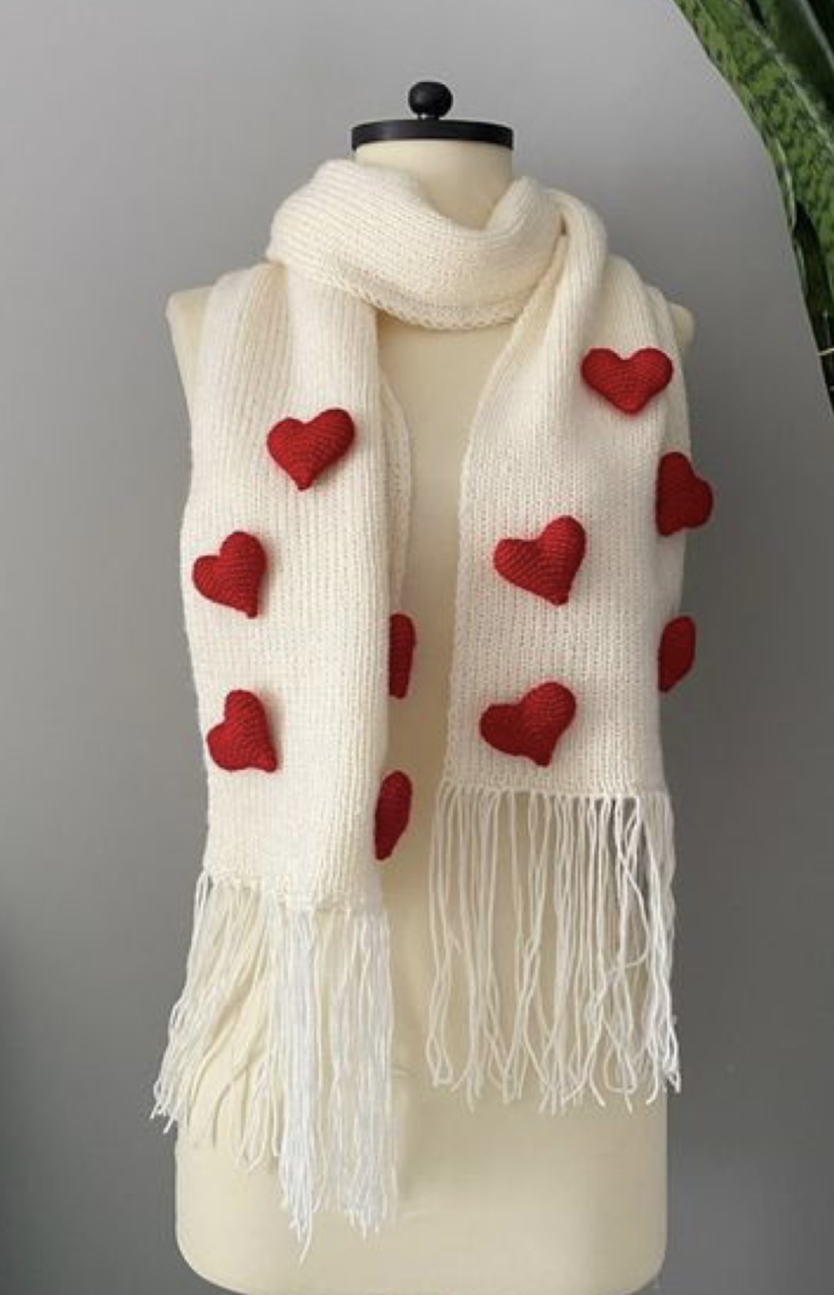3D Red Heart ♥️ winter warm creamy scarf 🧣